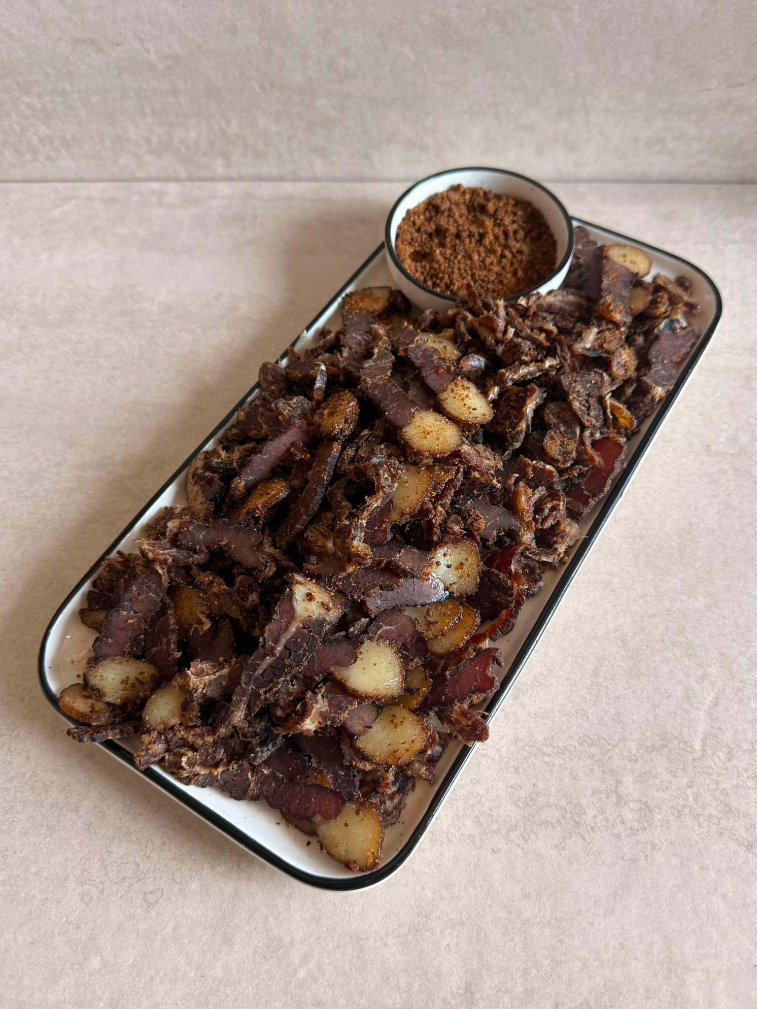 Sliced biltong & droëwors, seasoned with Premium’s secret blend of spices for an unmistakably South African taste. Perfect cure for a Sunday hangover.